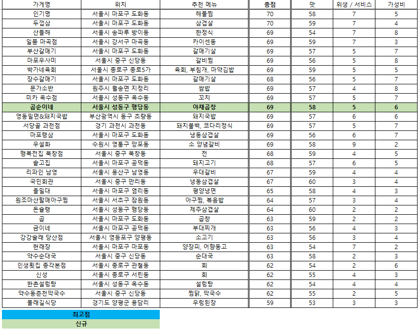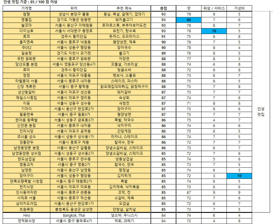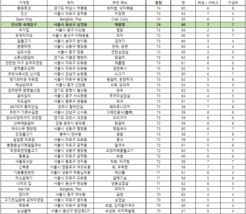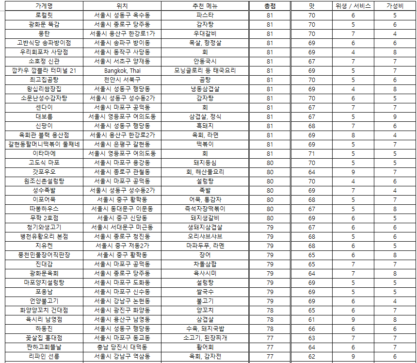 맛집 랭킹 - 2024. 12. 19 / 접슐랭