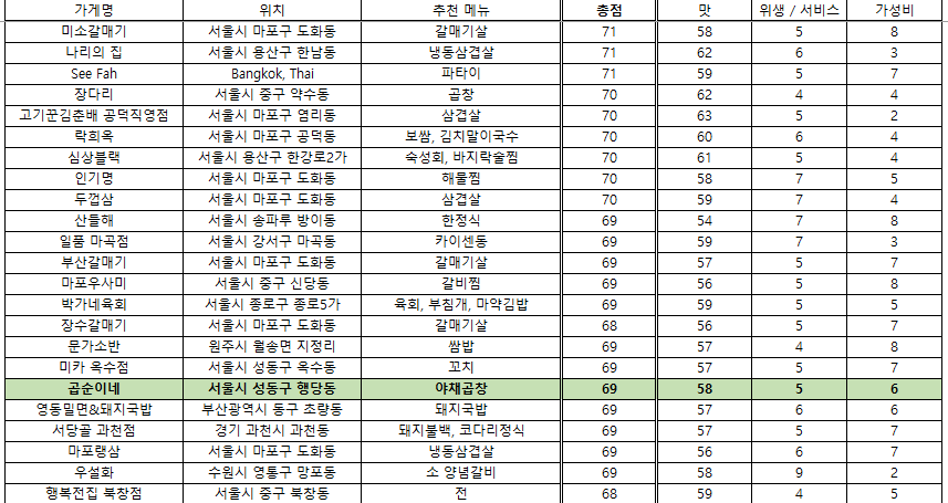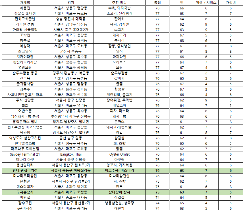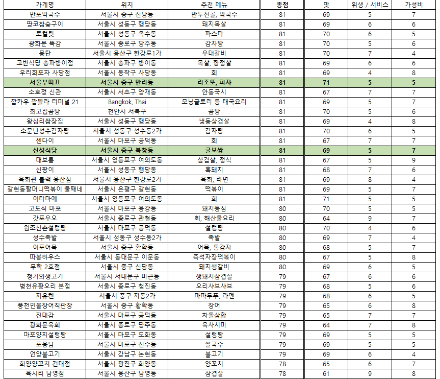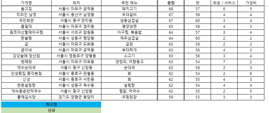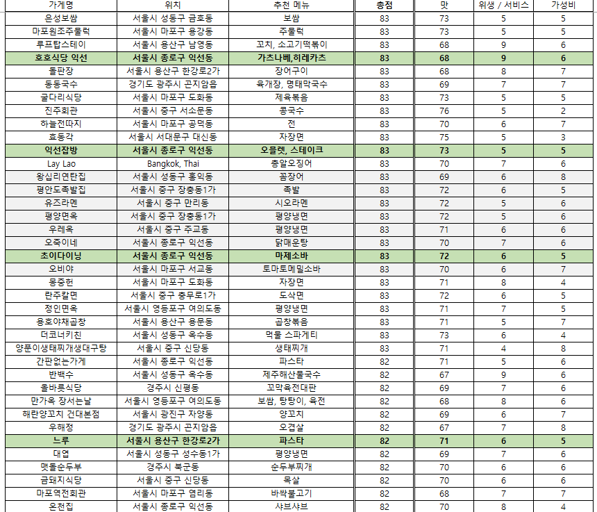 접슐랭 맛집 랭킹 - 2024. 12. 28 / 접슐랭