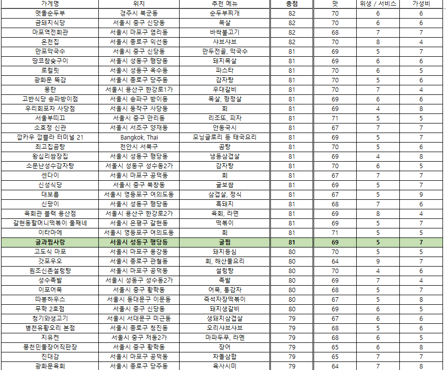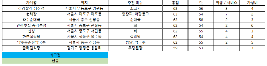 맛집 랭킹 - 2025. 1. 25 / 접슐랭