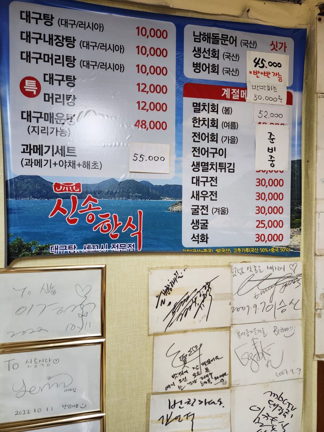 주문한 메뉴는 멸치회, 대구탕, 대구전.