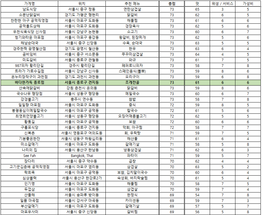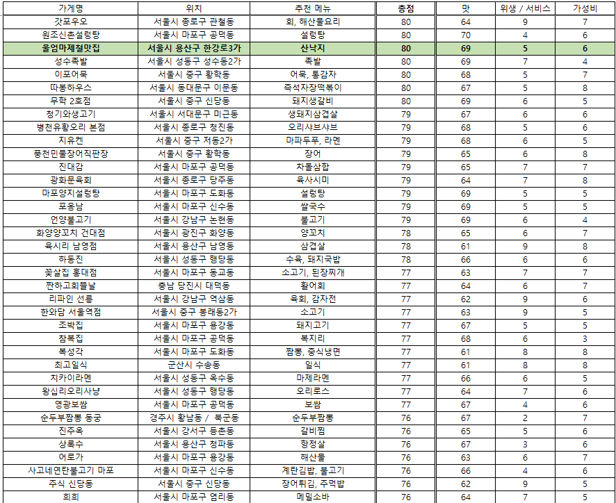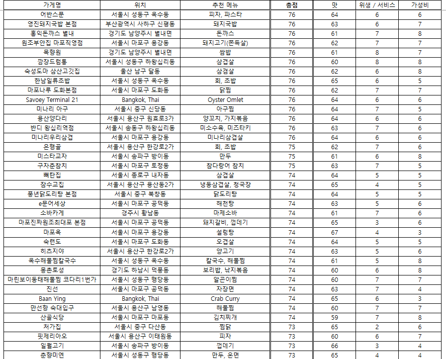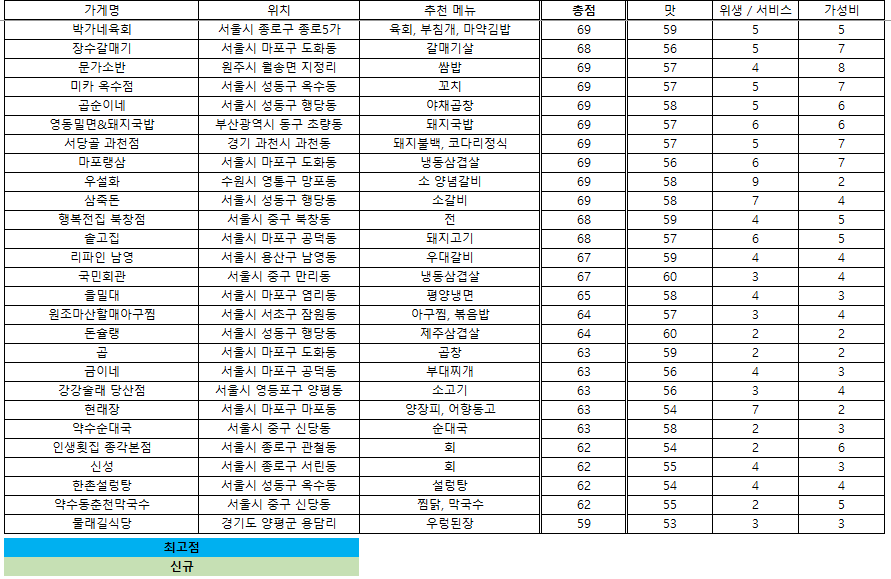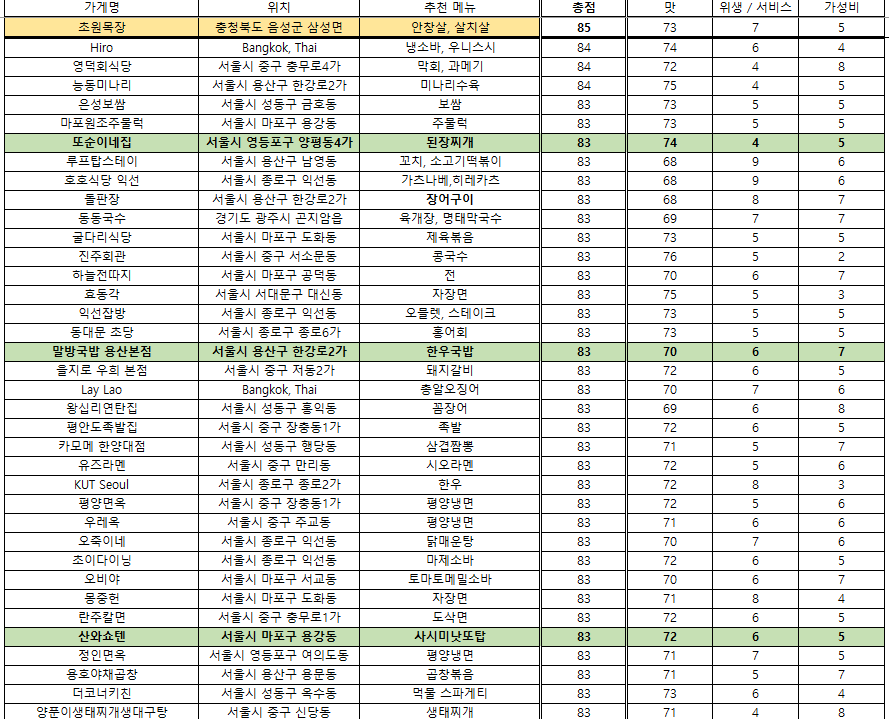 맛집 랭킹 - 2025. 4. 29 / 접슐랭