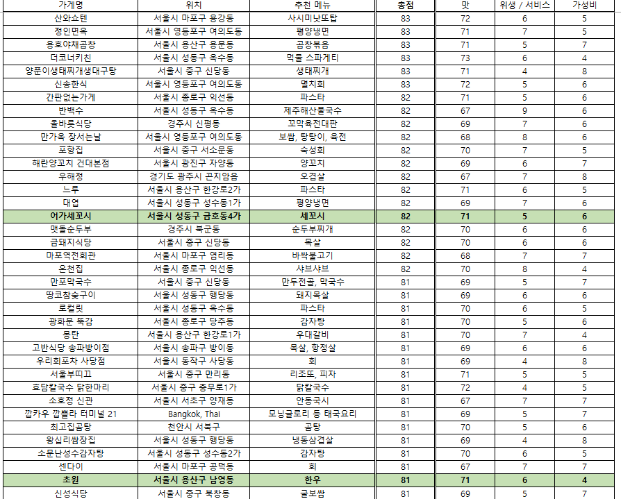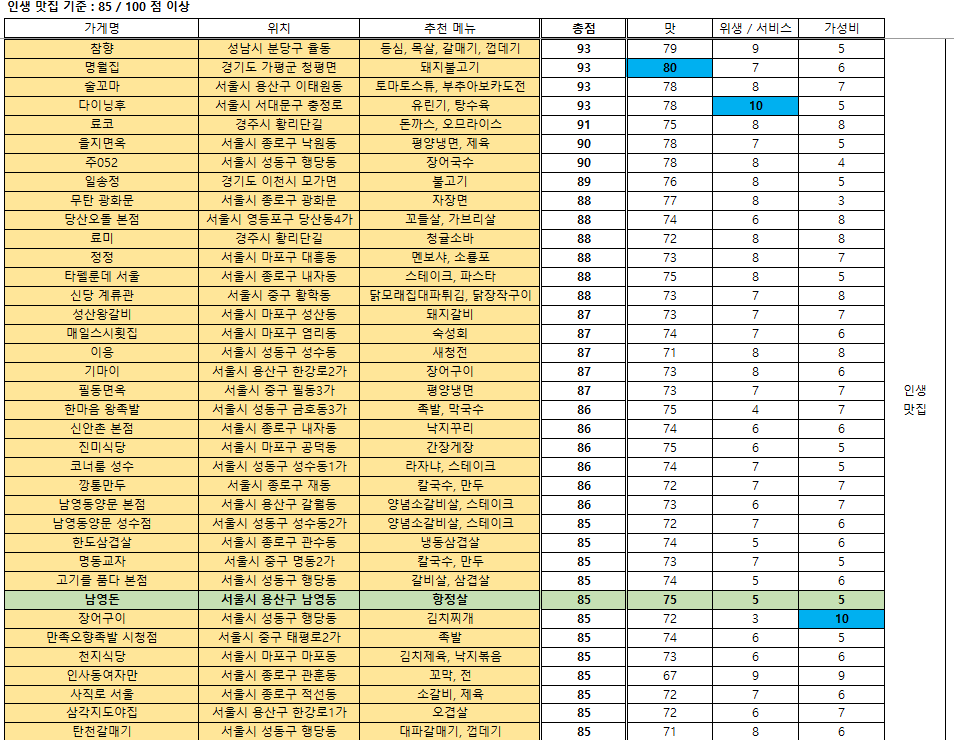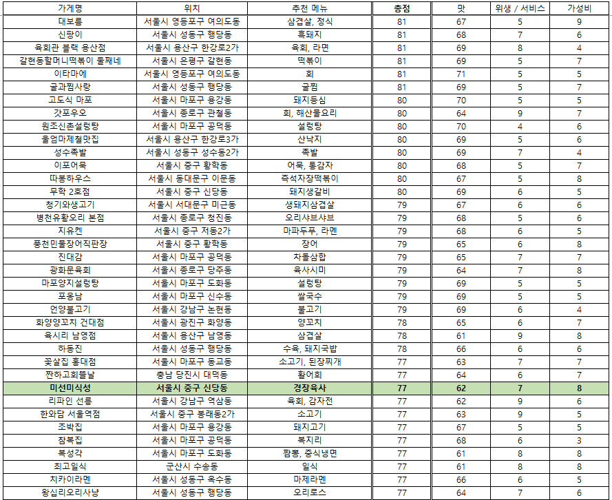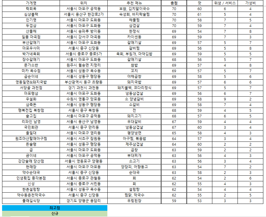 맛집 랭킹 - 2025. 6. 3 / 접슐랭
