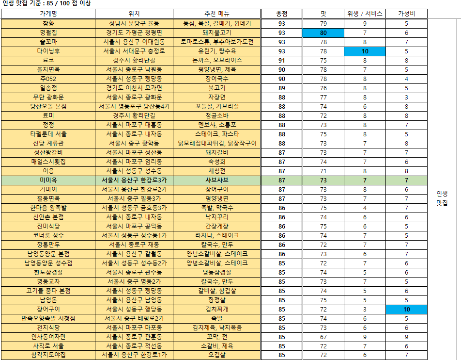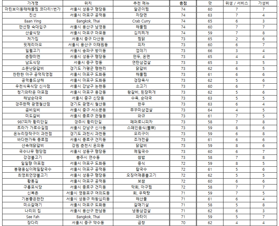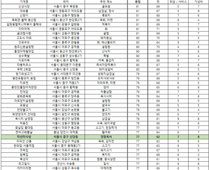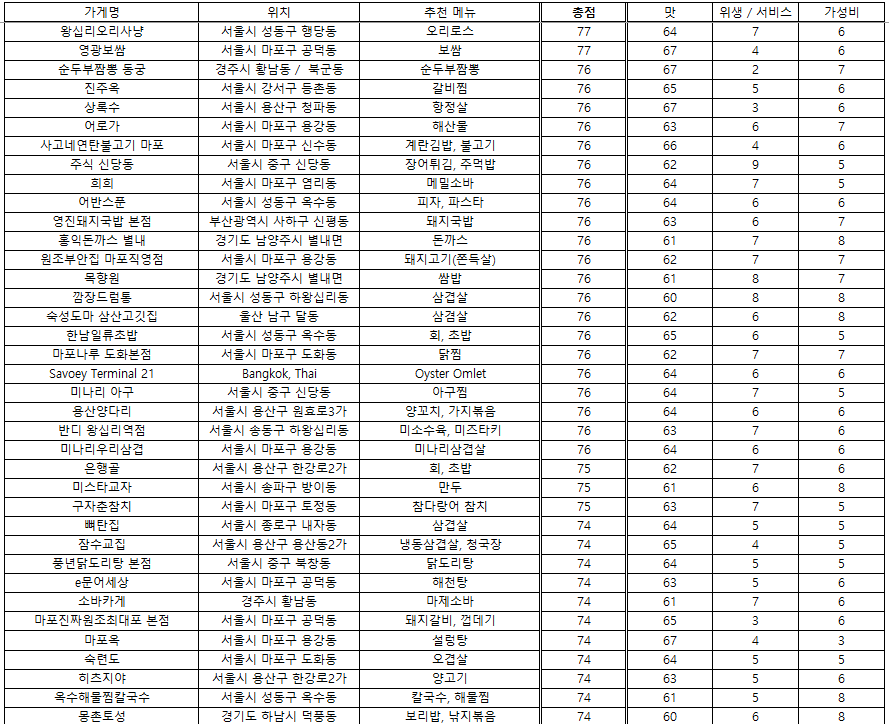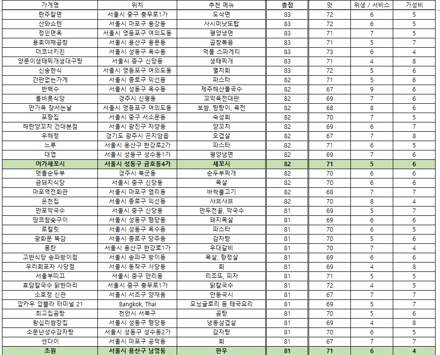 맛집 랭킹 - 2025. 6. 5 / 접슐랭
