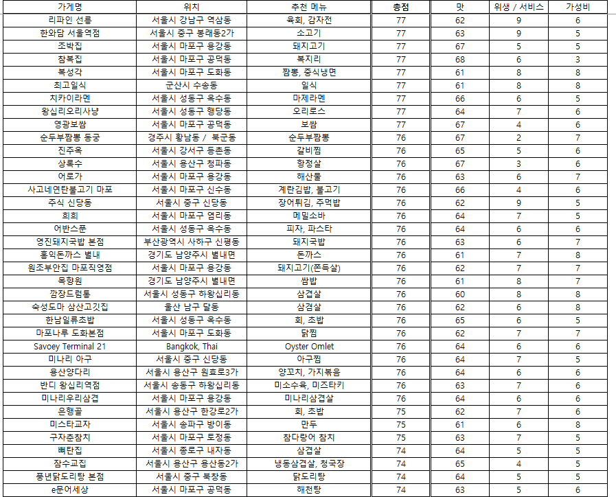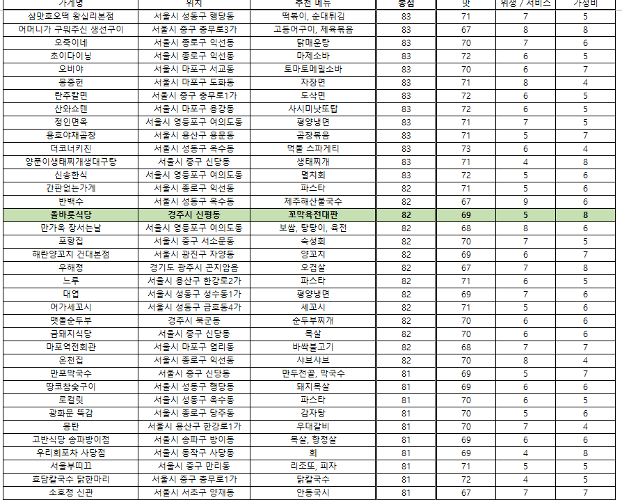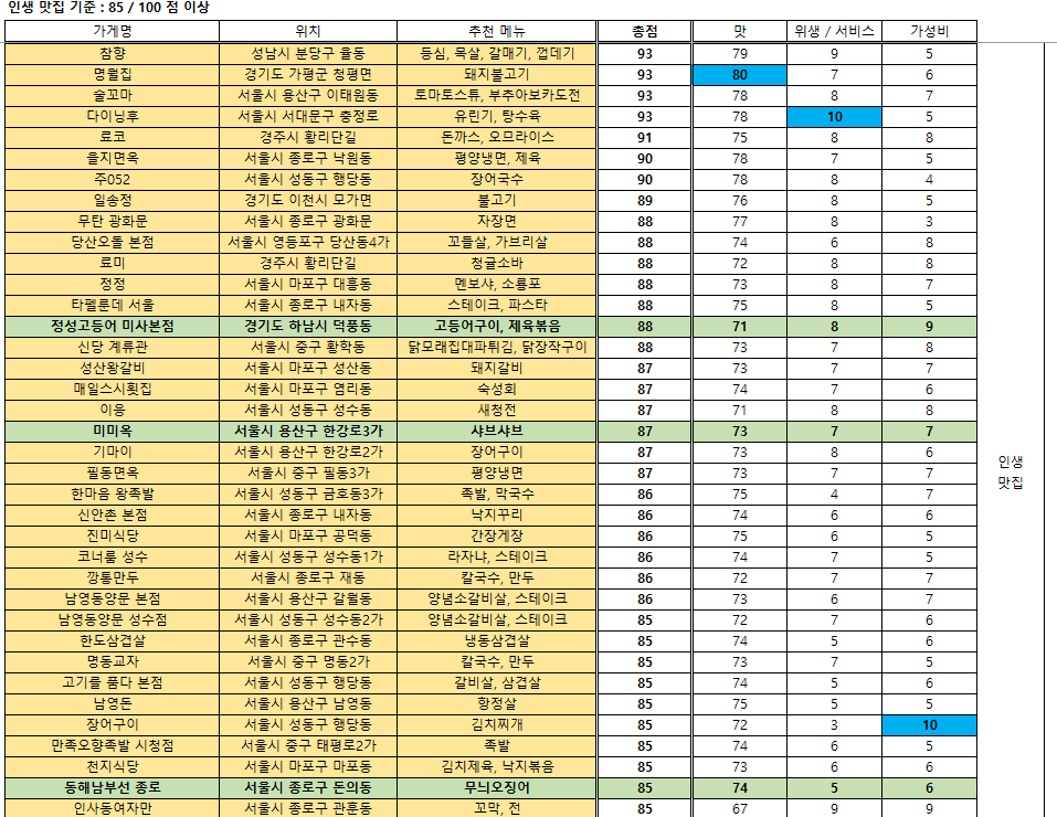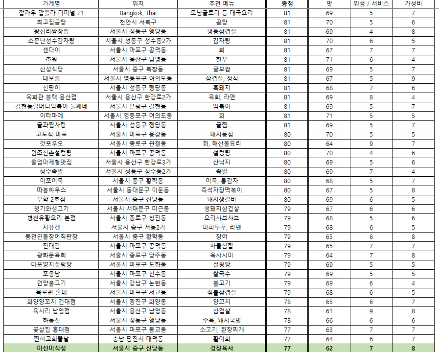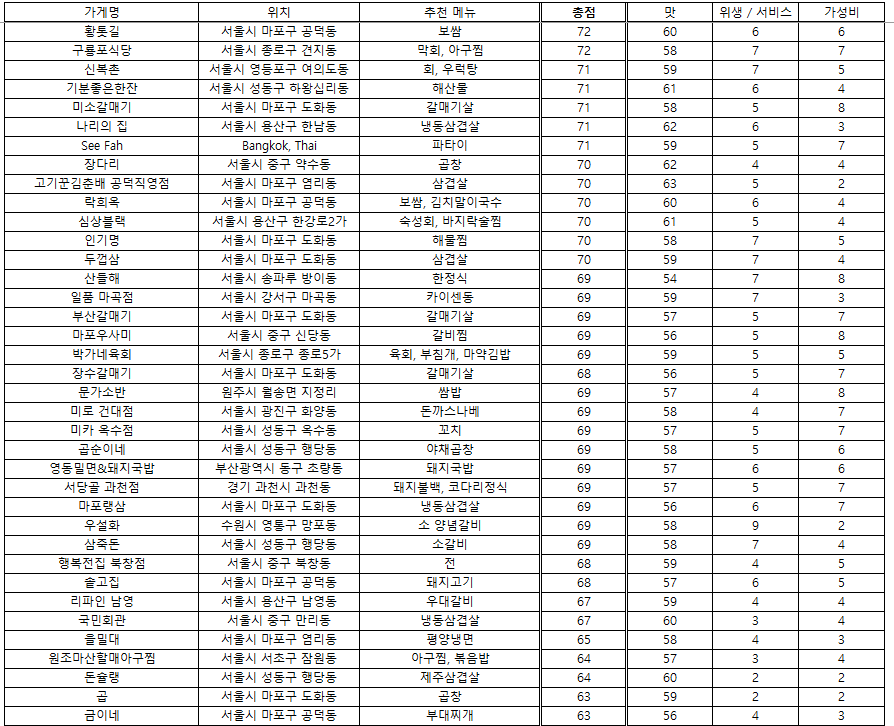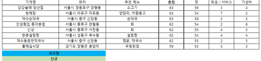 맛집 랭킹 - 2025. 7. 22 / 접슐랭