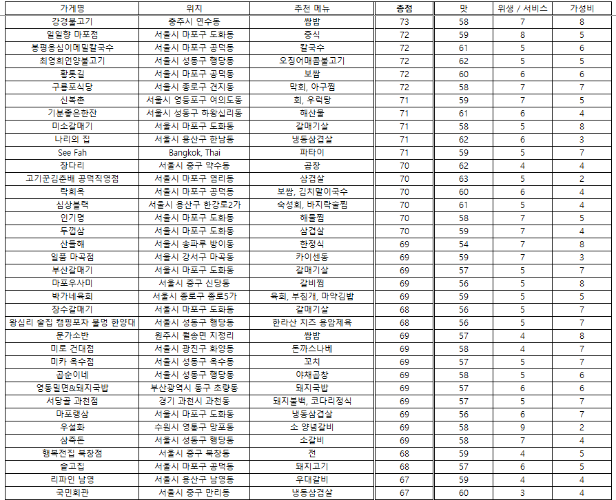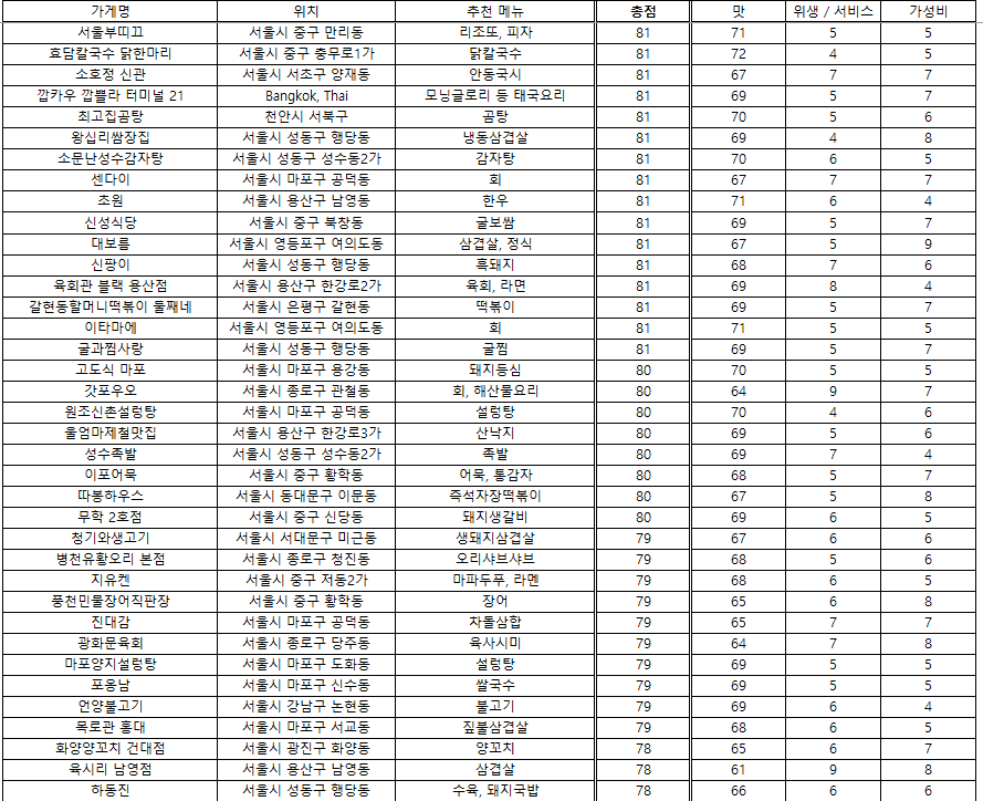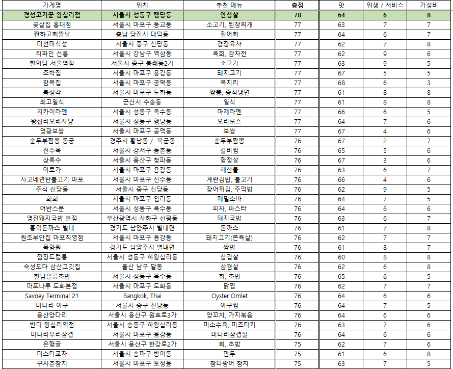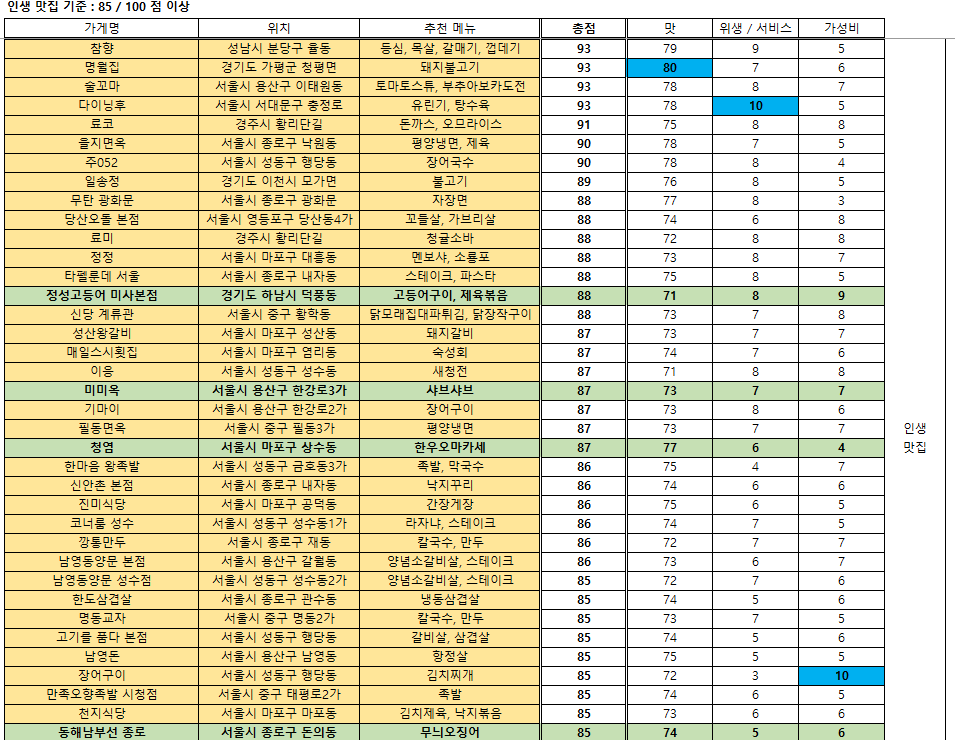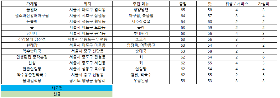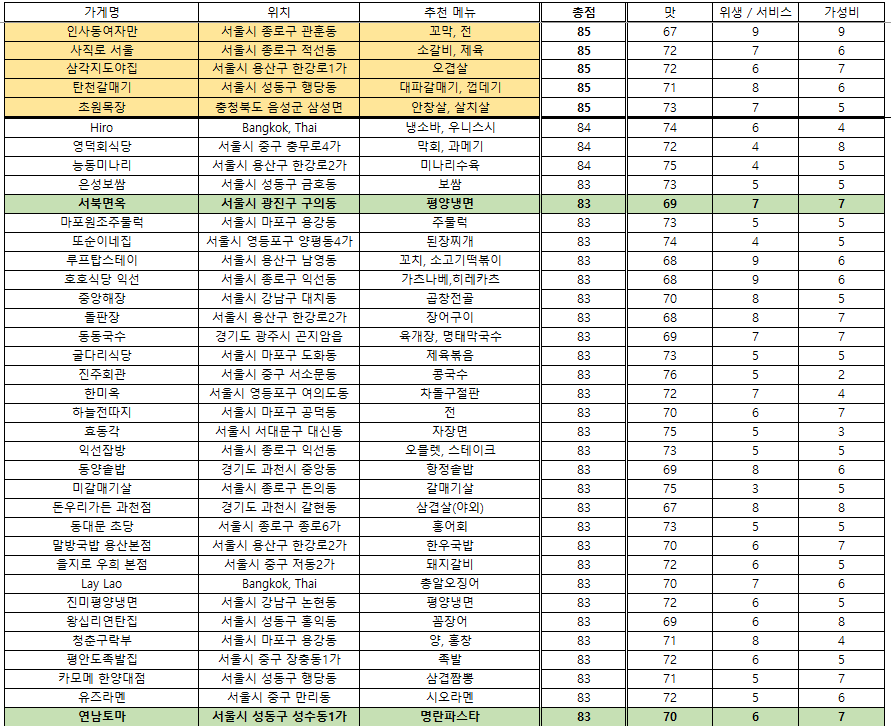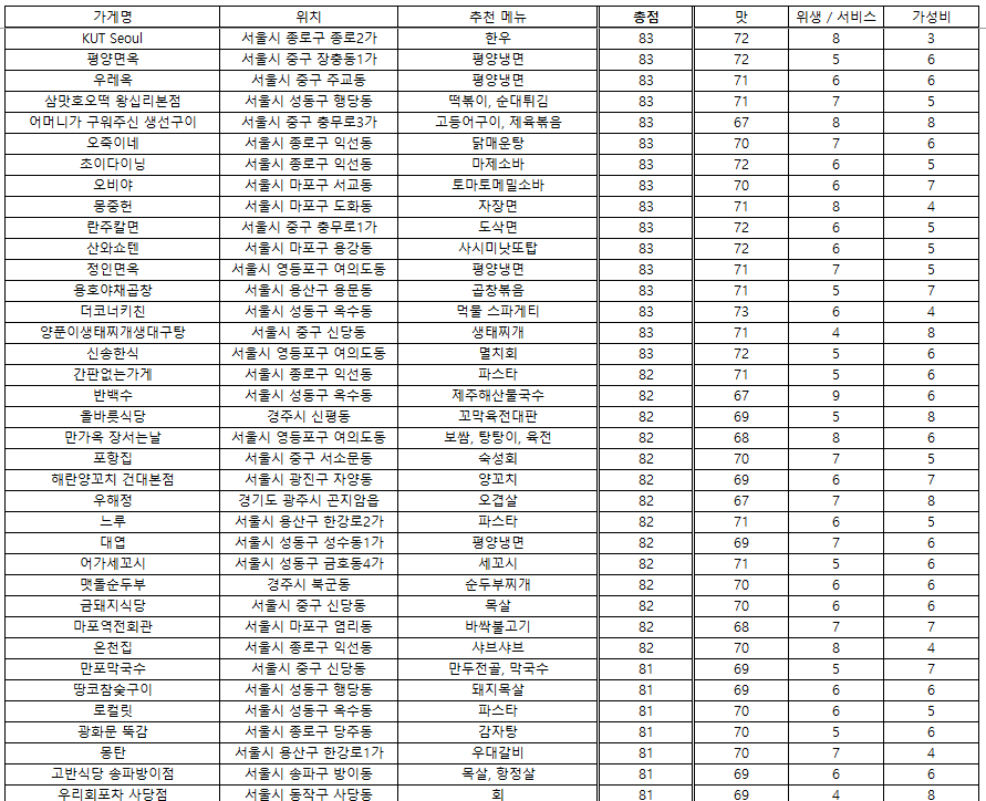맛집 랭킹 - 2025. 8. 22 / 접슐랭