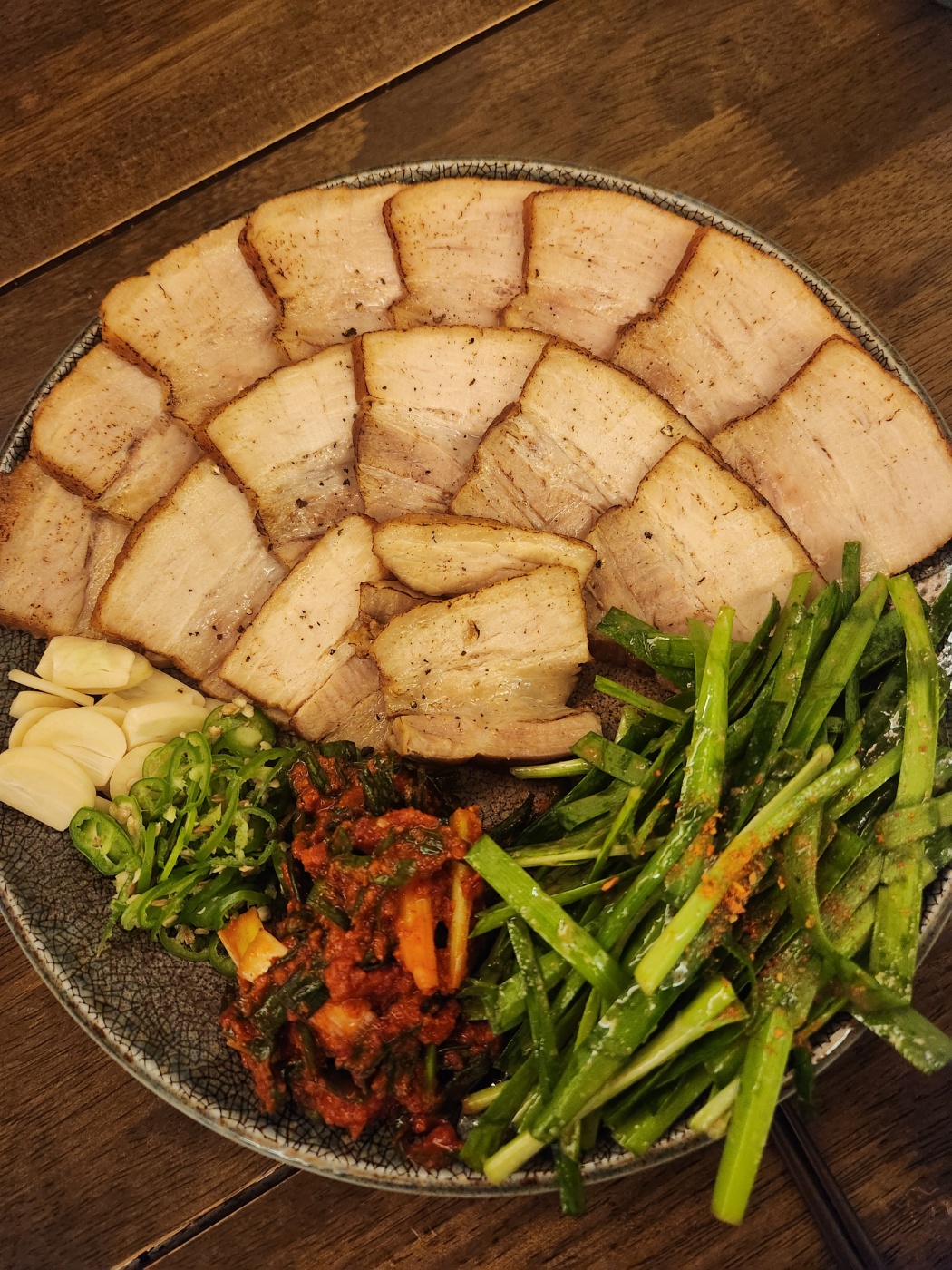 단골집을 방문했다. 천지식당 https://naver.me/5UraxjVY굴다리식당(https://naver.me/5Q38fyZS)과 함께 마포, 공덕에서 제육 탑클래스인 식당 필자의 단골 자리는 룸 안쪽이다. 홀 소음이 덜하고, 아늑한 분위기여서 손님 접대하기 안성맞춤. 여느 때와 같이 김치제육, 고등어를 주문했다. 이 집은 모든 음식의 간이 좋다. 기본찬들도 간이 좋기는 마찬가지. 특히 시금치와 된장국 간이 훌륭하다. 김치제육은 역시나 감칠맛 좋은 김치에 탄력있는 고기가 균형감이 있다. 김치제육이 다소 맵게 느껴질 때마다 고등어 구이를 한번씩 먹으면 입 안의 매운 맛을 식혀 준다. 가격, 음식, 분위기 모든 면에서 훌륭한 식당. 지금의 모습이 변치 않길 바란다. Fin.