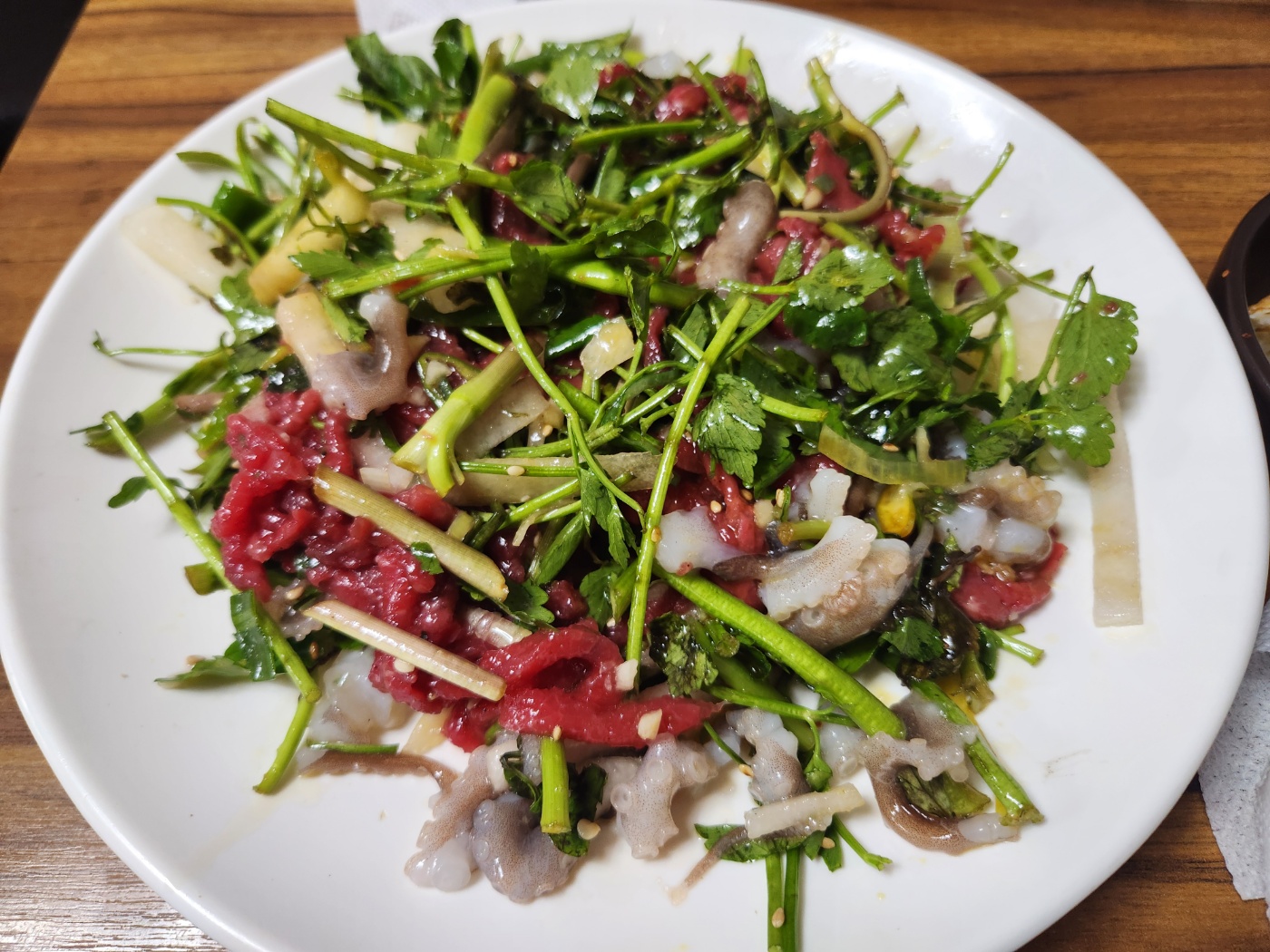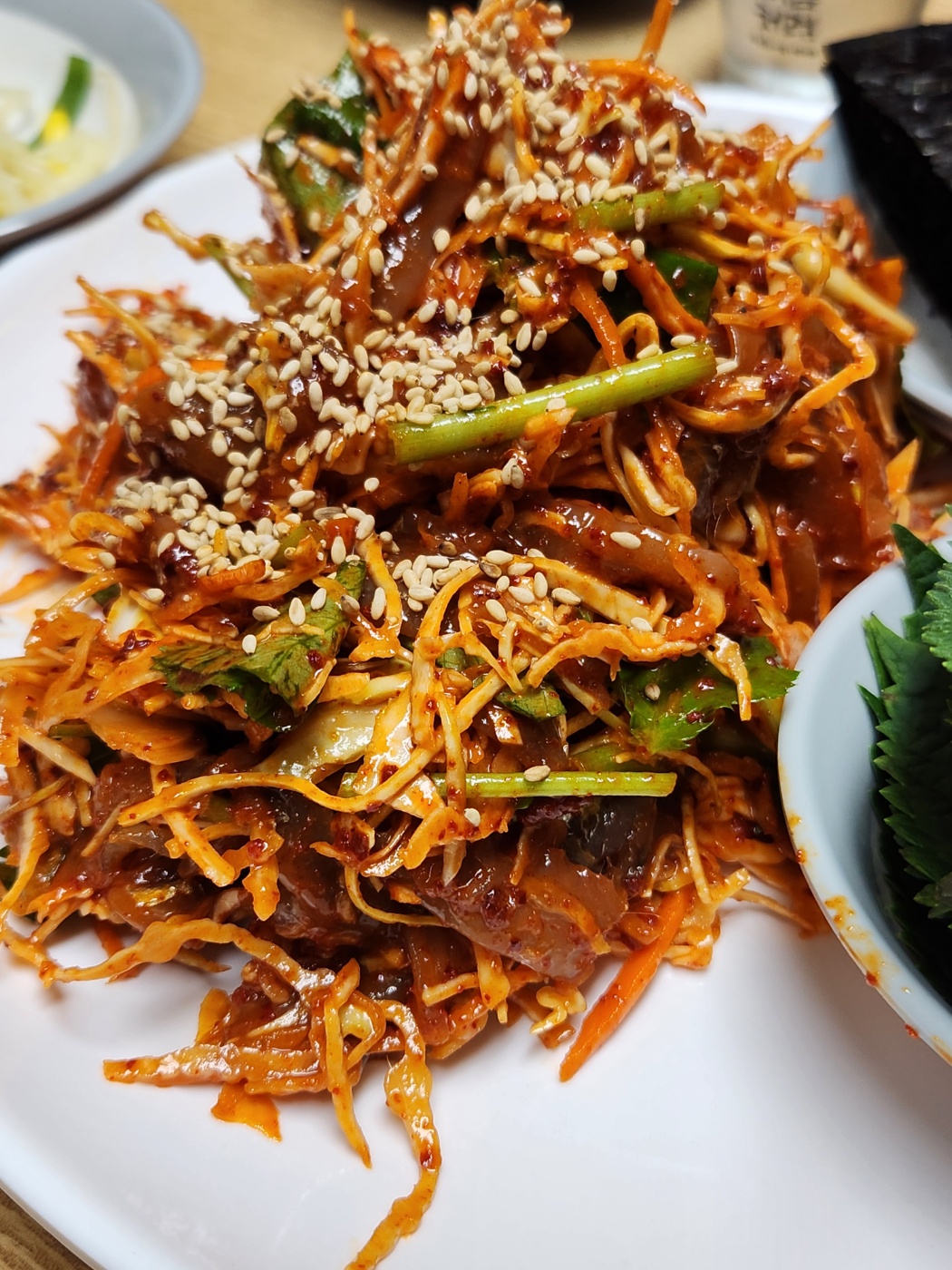 태어나서 처음 먹어 본 멸치회는 별미였다. 신송한식 https://naver.me/GNW6weJp가게는 일반 한식당과 다를 바 없으나, 다소 산만한 분위기. 신발을 벗고, 입장하는 공간도 있으나 룸처럼 방음이 되지는 않는다. 밑반찬 중에서도 멸치볶음은 간이 훌륭하다. 기본찬들만으로도 수준급 식당임이 증명된다. 주문한 메뉴는 멸치회, 대구탕, 대구전. 멸치회는 멸치 특유의 고소한 맛이 일품이며, 자칫 비릴 수 있는 맛과 멸치회의 부족한 식감을 매운 채소가 잡아준다. 균형감이 좋은 요리. 대구탕은 고추장베이스이나, 담백하게 매워 회와 곁들여 먹기 좋다. 메뉴 구성이 뛰어나다. 대구전은 평균적인 수준. 전체적으로 가격이 저렴하지는 않으나, 소소한 회식, 접대자리로 적격인 곳이다. ..